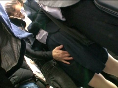 スカート越し ローションまみれの濃紺プリーツスカート越しに