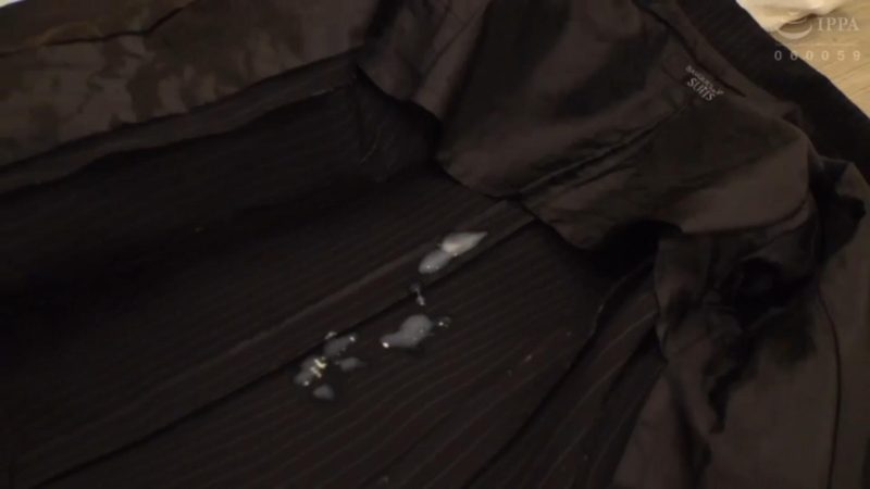 脱がされたスーツジャケットに射精!