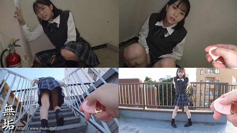 リモバイでチェックの制服スカートで悶える姿に興奮!